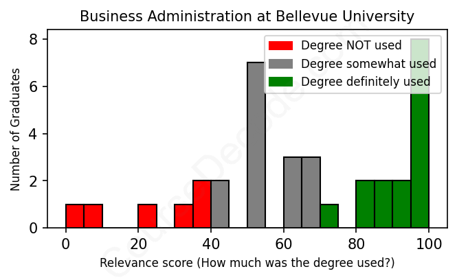 First, some facts. Of the Business Administration graduates from Bellevue University we've analyzed , here's how many have used (or NOT used) their degree in their career: