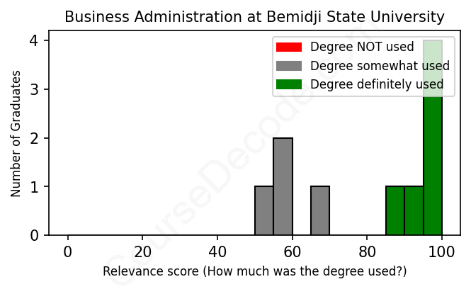 First, some facts. Of the Business Administration graduates from Bemidji State University we've analyzed , here's how many have used (or NOT used) their degree in their career: