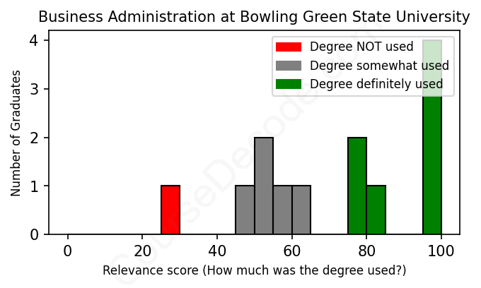 First, some facts. Of the Business Administration graduates from Bowling Green State University we've analyzed , here's how many have used (or NOT used) their degree in their career:
