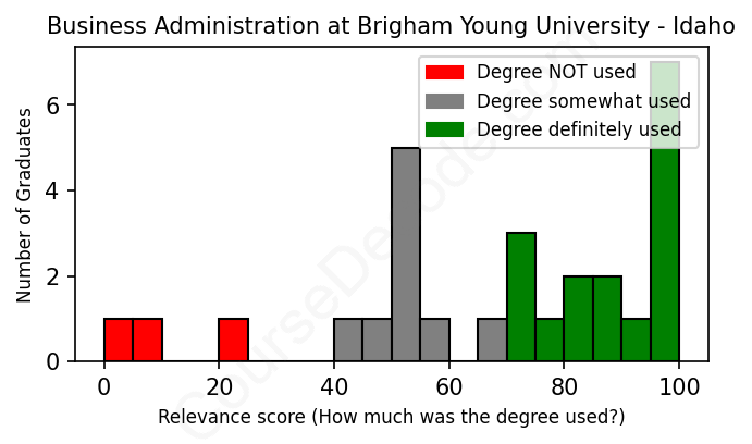 First, some facts. Of the Business Administration graduates from Brigham Young University - Idaho we've analyzed , here's how many have used (or NOT used) their degree in their career: