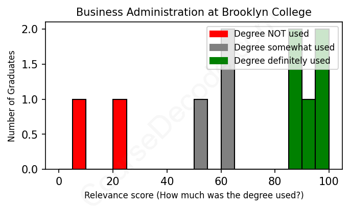 First, some facts. Of the Business Administration graduates from Brooklyn College we've analyzed , here's how many have used (or NOT used) their degree in their career: