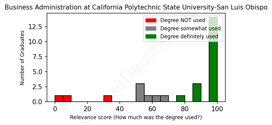 First, some facts. Of the Business Administration graduates from California Polytechnic State University-San Luis Obispo we've analyzed , here's how many have used (or NOT used) their degree in their career: