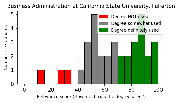 First, some facts. Of the Business Administration graduates from California State University, Fullerton we've analyzed , here's how many have used (or NOT used) their degree in their career: