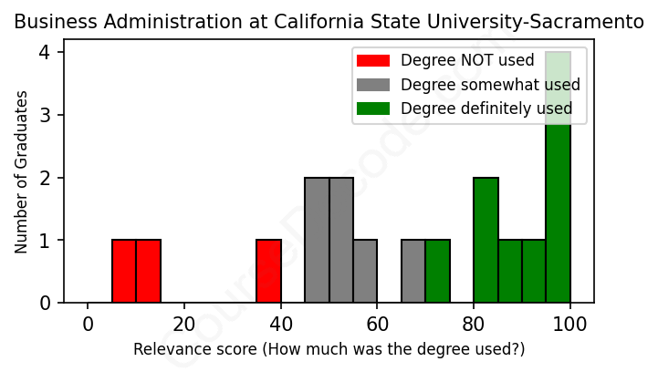 First, some facts. Of the Business Administration graduates from California State University-Sacramento we've analyzed , here's how many have used (or NOT used) their degree in their career: