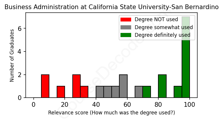 First, some facts. Of the Business Administration graduates from California State University-San Bernardino we've analyzed , here's how many have used (or NOT used) their degree in their career: