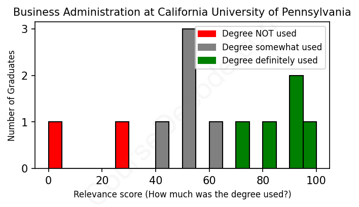 First, some facts. Of the Business Administration graduates from California University of Pennsylvania we've analyzed , here's how many have used (or NOT used) their degree in their career: