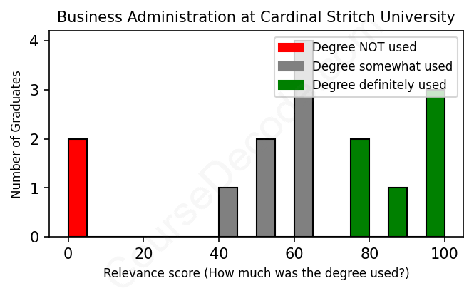 First, some facts. Of the Business Administration graduates from Cardinal Stritch University we've analyzed , here's how many have used (or NOT used) their degree in their career: