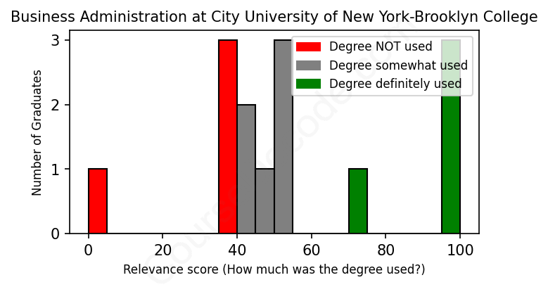 First, some facts. Of the Business Administration graduates from City University of New York-Brooklyn College we've analyzed , here's how many have used (or NOT used) their degree in their career: