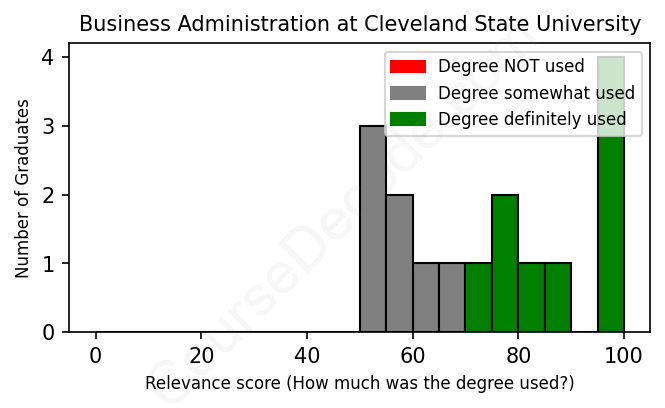 First, some facts. Of the Business Administration graduates from Cleveland State University we've analyzed , here's how many have used (or NOT used) their degree in their career: