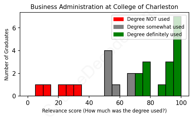 First, some facts. Of the Business Administration graduates from College of Charleston we've analyzed , here's how many have used (or NOT used) their degree in their career: