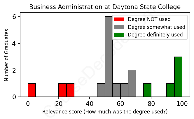 First, some facts. Of the Business Administration graduates from Daytona State College we've analyzed , here's how many have used (or NOT used) their degree in their career: