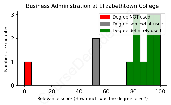 First, some facts. Of the Business Administration graduates from Elizabethtown College we've analyzed , here's how many have used (or NOT used) their degree in their career: