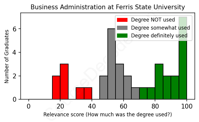 First, some facts. Of the Business Administration graduates from Ferris State University we've analyzed , here's how many have used (or NOT used) their degree in their career: