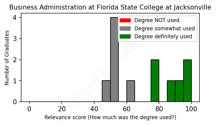 First, some facts. Of the Business Administration graduates from Florida State College at Jacksonville we've analyzed , here's how many have used (or NOT used) their degree in their career: