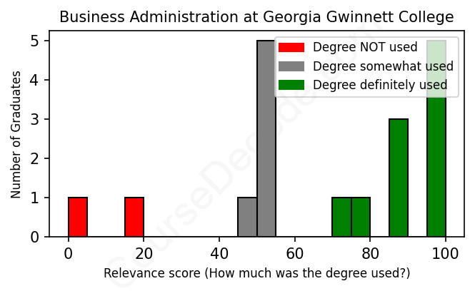 First, some facts. Of the Business Administration graduates from Georgia Gwinnett College we've analyzed , here's how many have used (or NOT used) their degree in their career: