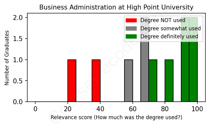 First, some facts. Of the Business Administration graduates from High Point University we've analyzed , here's how many have used (or NOT used) their degree in their career: