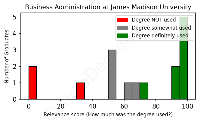 First, some facts. Of the Business Administration graduates from James Madison University we've analyzed , here's how many have used (or NOT used) their degree in their career: