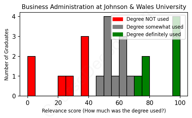 First, some facts. Of the Business Administration graduates from Johnson & Wales University we've analyzed , here's how many have used (or NOT used) their degree in their career: