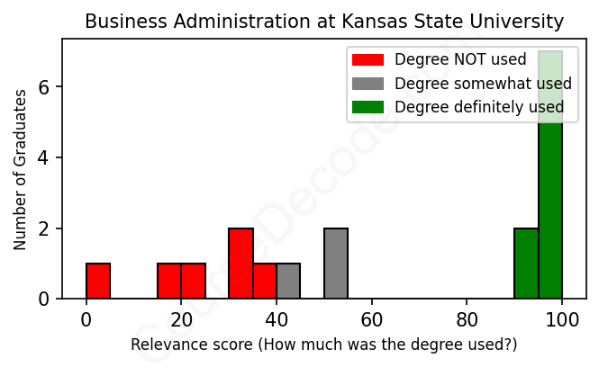 First, some facts. Of the Business Administration graduates from Kansas State University we've analyzed , here's how many have used (or NOT used) their degree in their career: