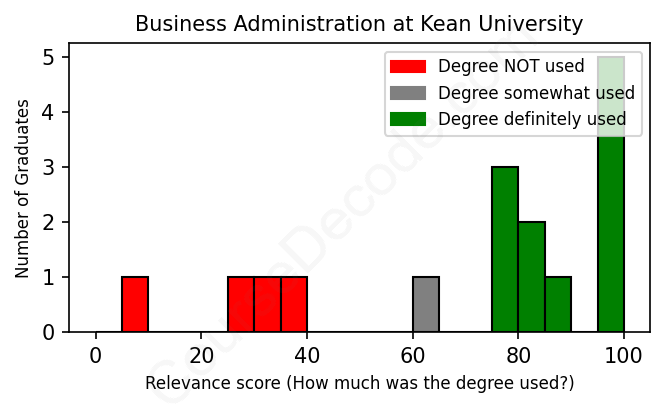 First, some facts. Of the Business Administration graduates from Kean University we've analyzed , here's how many have used (or NOT used) their degree in their career: