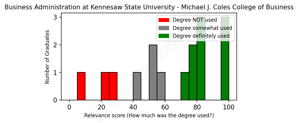 First, some facts. Of the Business Administration graduates from Kennesaw State University - Michael J. Coles College of Business we've analyzed , here's how many have used (or NOT used) their degree in their career: