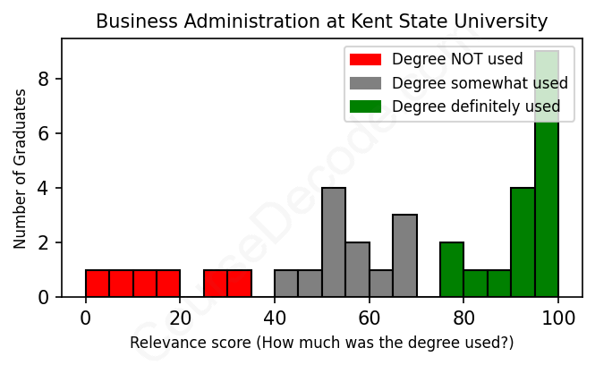First, some facts. Of the Business Administration graduates from Kent State University we've analyzed , here's how many have used (or NOT used) their degree in their career: