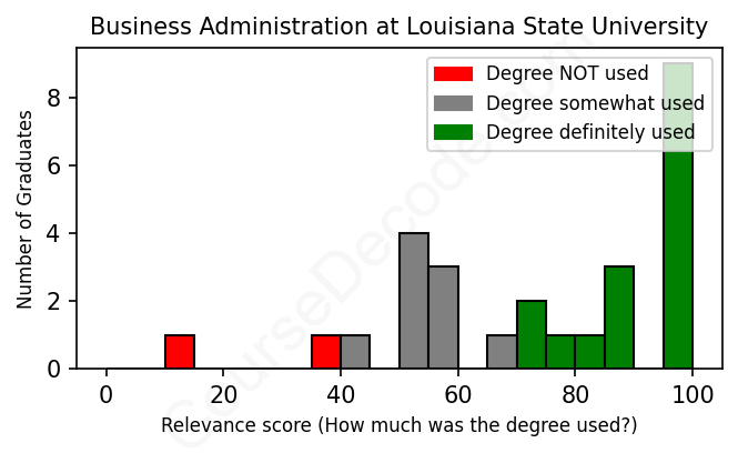 First, some facts. Of the Business Administration graduates from Louisiana State University we've analyzed , here's how many have used (or NOT used) their degree in their career: