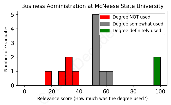 First, some facts. Of the Business Administration graduates from McNeese State University we've analyzed , here's how many have used (or NOT used) their degree in their career: