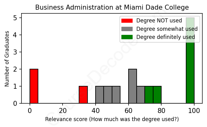 First, some facts. Of the Business Administration graduates from Miami Dade College we've analyzed , here's how many have used (or NOT used) their degree in their career: