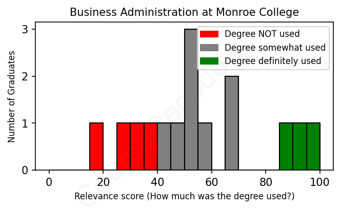 First, some facts. Of the Business Administration graduates from Monroe College we've analyzed , here's how many have used (or NOT used) their degree in their career: