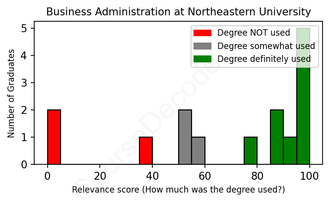 First, some facts. Of the Business Administration graduates from Northeastern University we've analyzed , here's how many have used (or NOT used) their degree in their career: