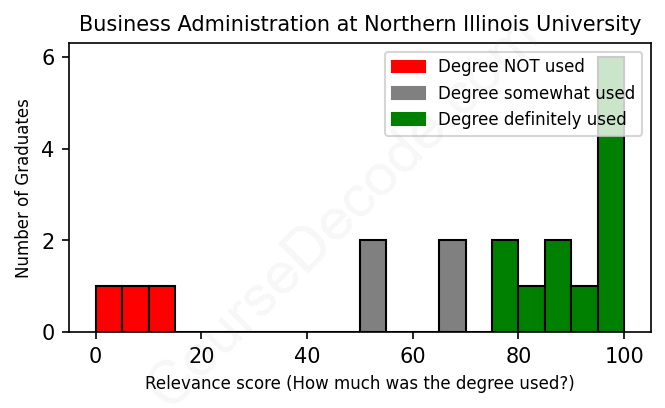 First, some facts. Of the Business Administration graduates from Northern Illinois University we've analyzed , here's how many have used (or NOT used) their degree in their career: