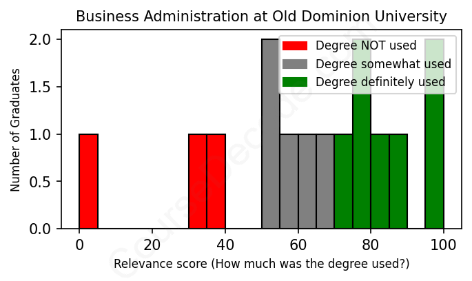 First, some facts. Of the Business Administration graduates from Old Dominion University we've analyzed , here's how many have used (or NOT used) their degree in their career: