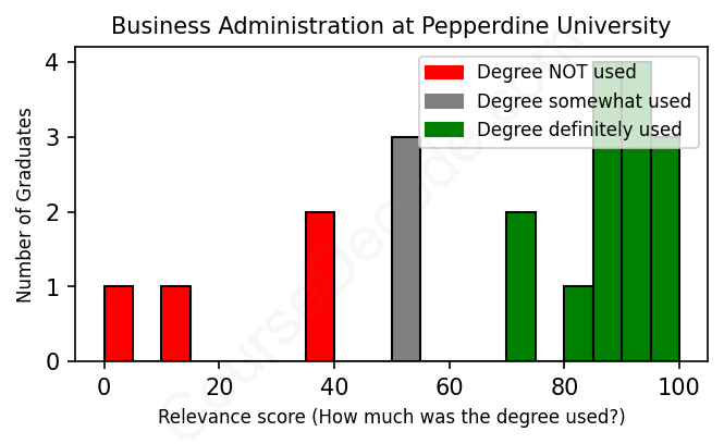 First, some facts. Of the Business Administration graduates from Pepperdine University we've analyzed , here's how many have used (or NOT used) their degree in their career: