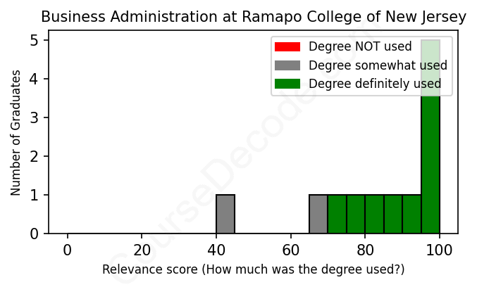 First, some facts. Of the Business Administration graduates from Ramapo College of New Jersey we've analyzed , here's how many have used (or NOT used) their degree in their career: