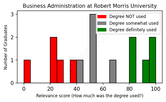 First, some facts. Of the Business Administration graduates from Robert Morris University we've analyzed , here's how many have used (or NOT used) their degree in their career: