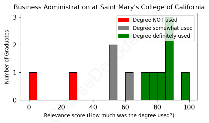 First, some facts. Of the Business Administration graduates from Saint Mary's College of California we've analyzed , here's how many have used (or NOT used) their degree in their career:
