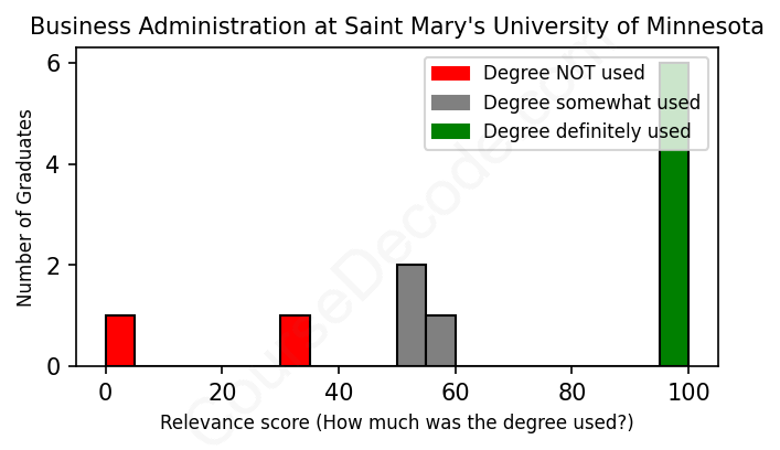 First, some facts. Of the Business Administration graduates from Saint Mary's University of Minnesota we've analyzed , here's how many have used (or NOT used) their degree in their career: