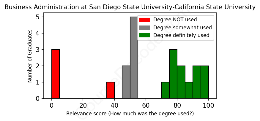 First, some facts. Of the Business Administration graduates from San Diego State University-California State University we've analyzed , here's how many have used (or NOT used) their degree in their career: