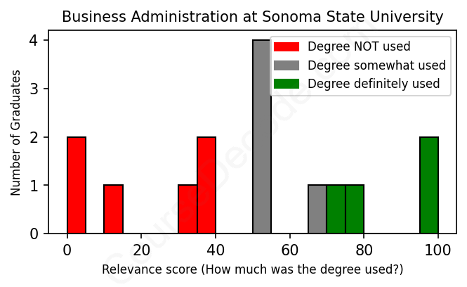 First, some facts. Of the Business Administration graduates from Sonoma State University we've analyzed , here's how many have used (or NOT used) their degree in their career: