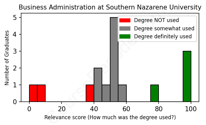 First, some facts. Of the Business Administration graduates from Southern Nazarene University we've analyzed , here's how many have used (or NOT used) their degree in their career: