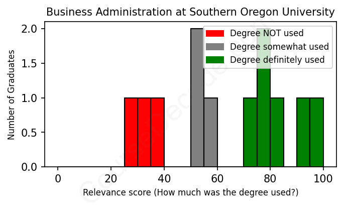 First, some facts. Of the Business Administration graduates from Southern Oregon University we've analyzed , here's how many have used (or NOT used) their degree in their career: