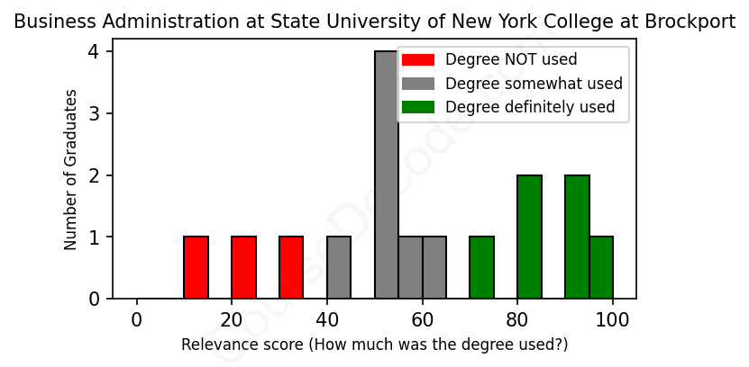 First, some facts. Of the Business Administration graduates from State University of New York College at Brockport we've analyzed , here's how many have used (or NOT used) their degree in their career: