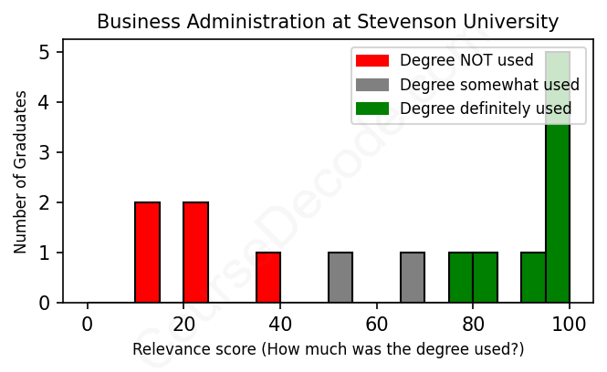 First, some facts. Of the Business Administration graduates from Stevenson University we've analyzed , here's how many have used (or NOT used) their degree in their career: