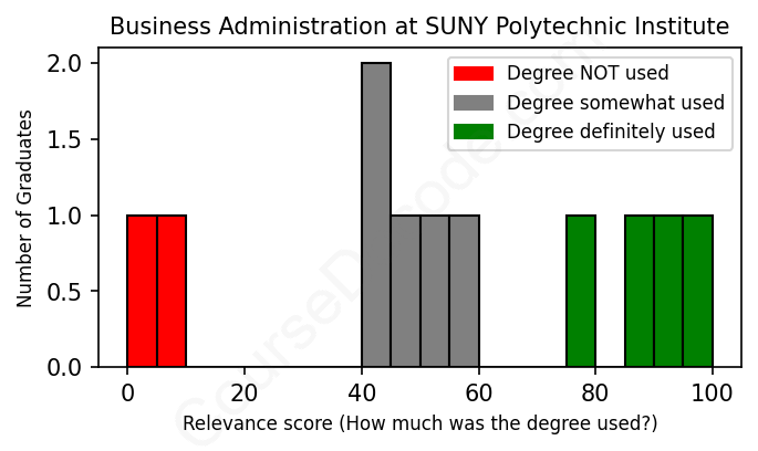 First, some facts. Of the Business Administration graduates from SUNY Polytechnic Institute we've analyzed , here's how many have used (or NOT used) their degree in their career: