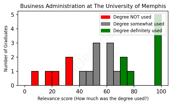 First, some facts. Of the Business Administration graduates from The University of Memphis we've analyzed , here's how many have used (or NOT used) their degree in their career: