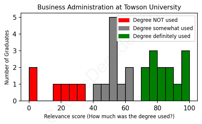 First, some facts. Of the Business Administration graduates from Towson University we've analyzed , here's how many have used (or NOT used) their degree in their career: