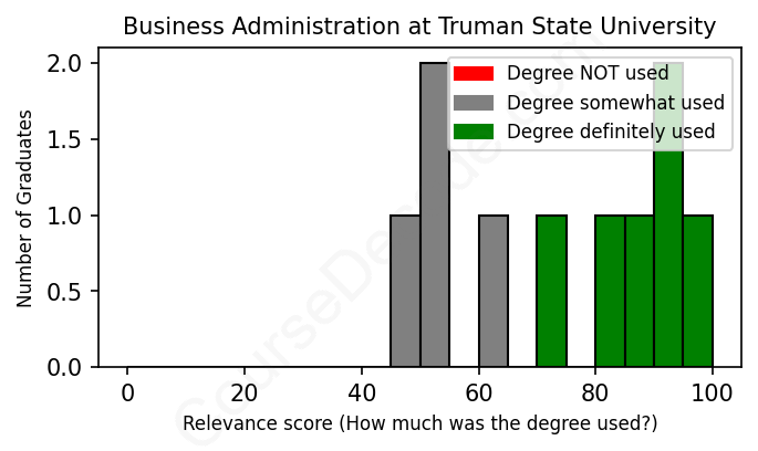First, some facts. Of the Business Administration graduates from Truman State University we've analyzed , here's how many have used (or NOT used) their degree in their career: