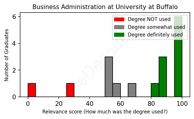 First, some facts. Of the Business Administration graduates from University at Buffalo we've analyzed , here's how many have used (or NOT used) their degree in their career: