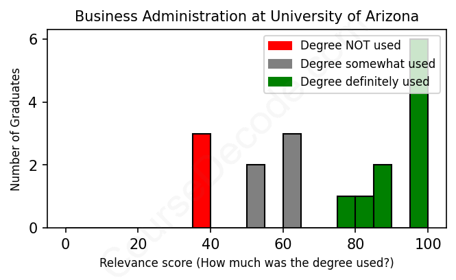 First, some facts. Of the Business Administration graduates from University of Arizona we've analyzed , here's how many have used (or NOT used) their degree in their career: